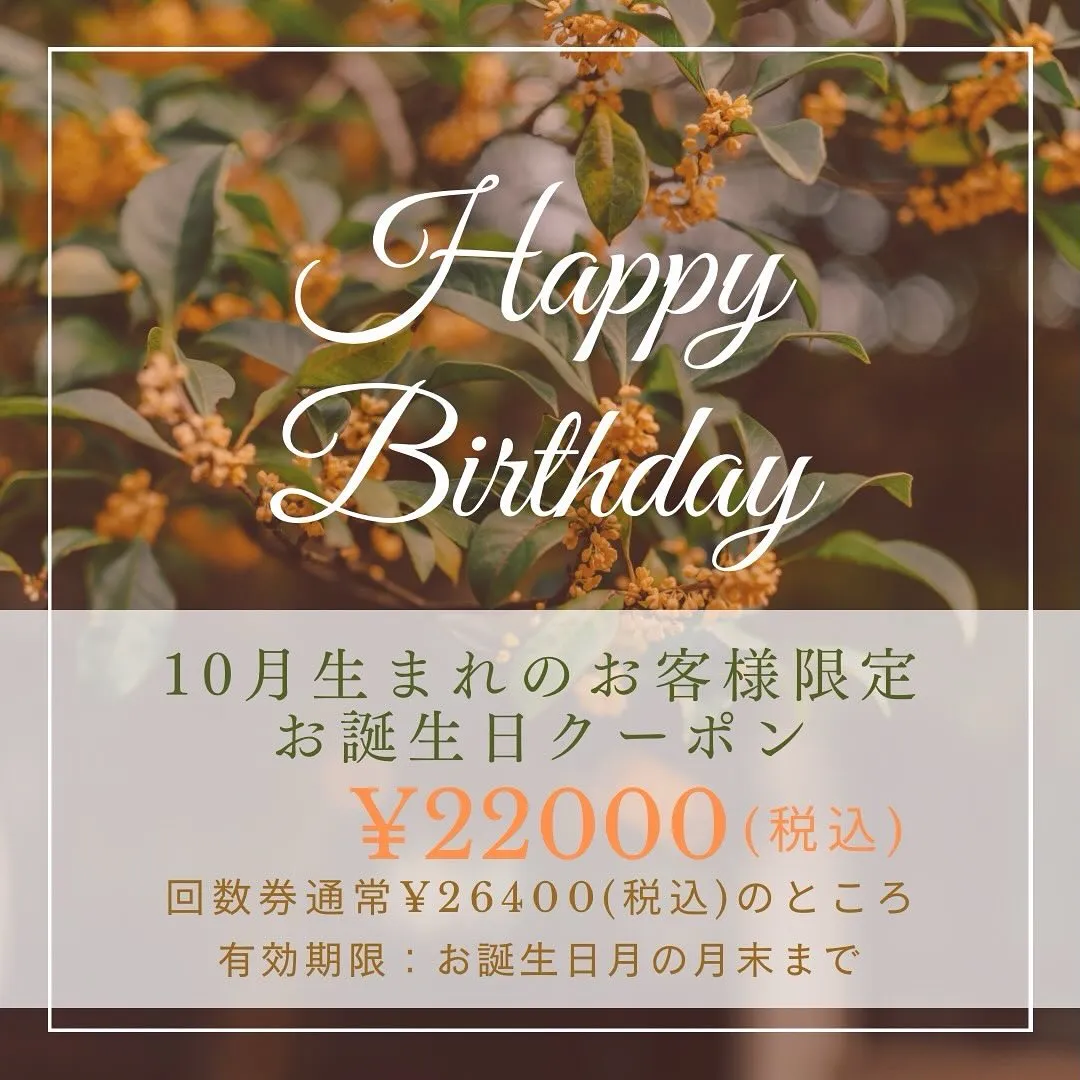 10月のお誕生日クーポンは、皆様に愛と感謝の気持ちを込めての大好きな金木犀のデザインに致しました😍