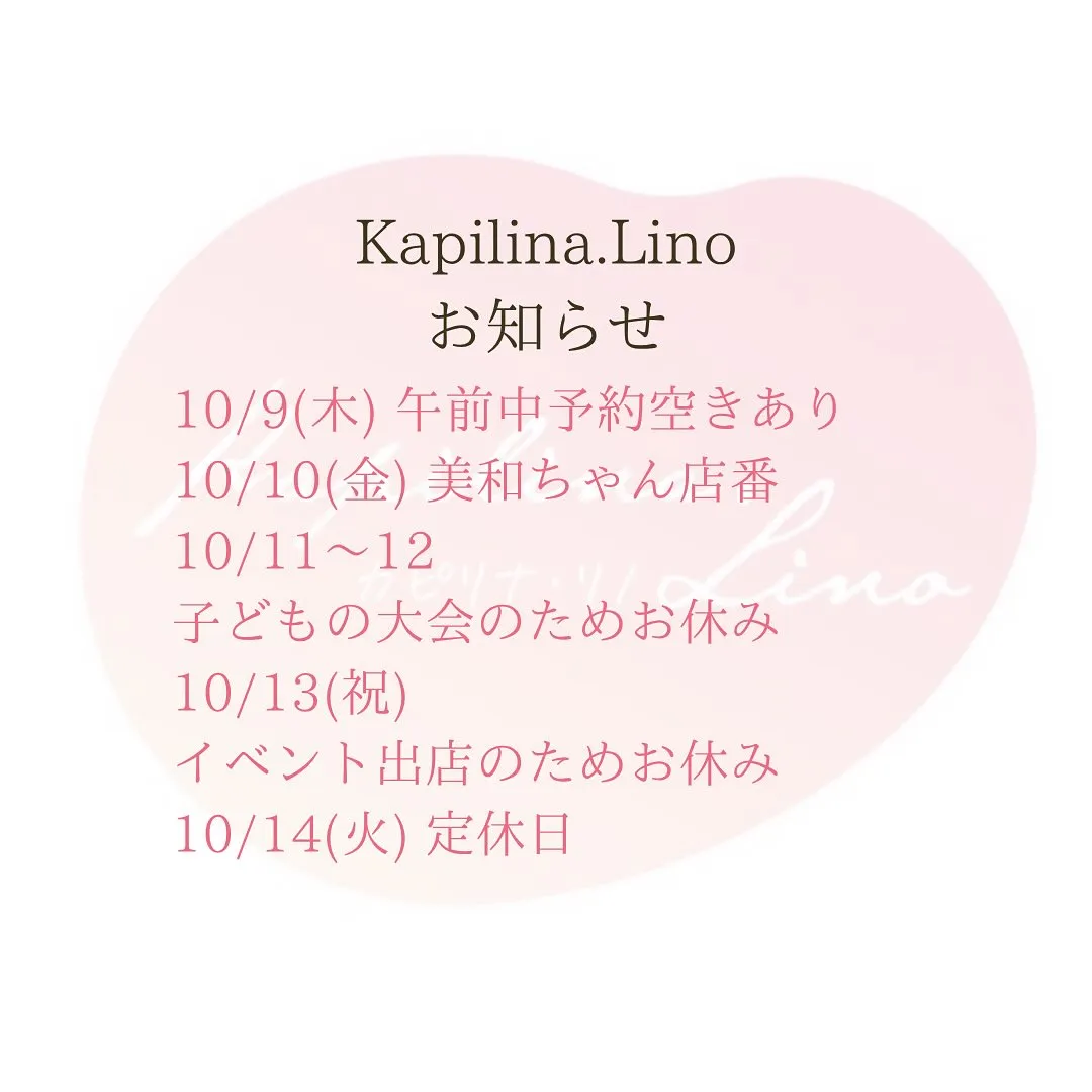 3連休中、サロンはお休みいただきますが、また10/15(水)〜ご予約お待ちしてます🥰💓
