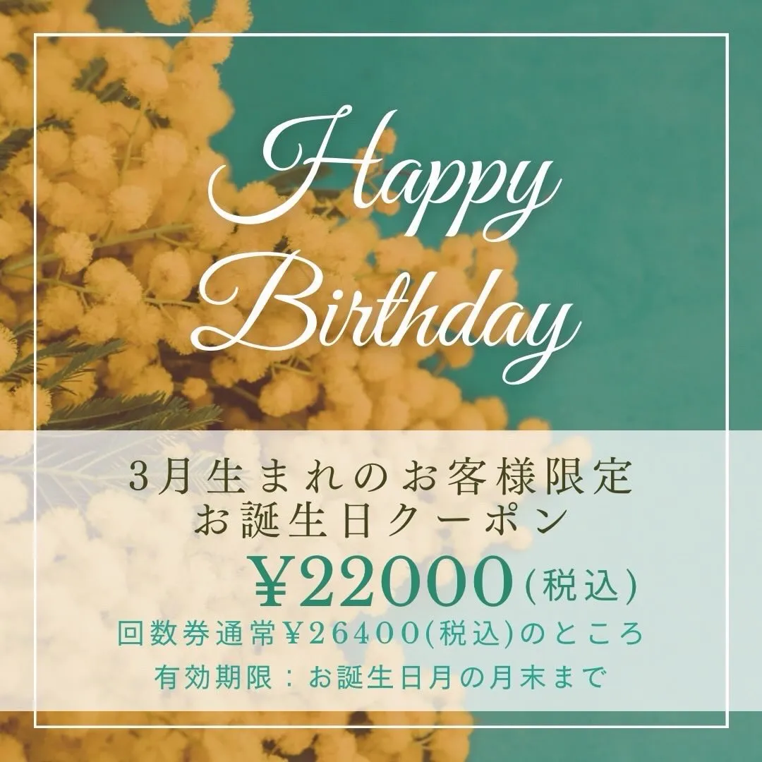 3月がお誕生日のお友達に「今ならお得なクーポンで回数券購入出来るよー」とお声掛けいただいても良し🙆♀️